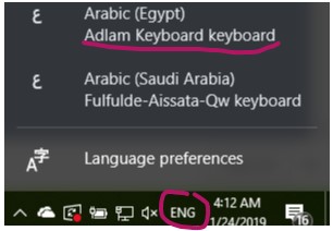 When you select it in Windows it should say Adlam keyboard, but when you are selecting the language at the bottom of your screen, you chose Arabic